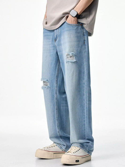 Men's Full Size Vintage Distressed Wide Leg Ripped Jeans Plus Size